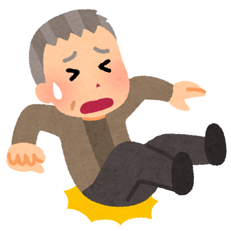 高齢患者さんがスリッパで滑り転倒するイラスト フリー素材 看護roo カンゴルー
